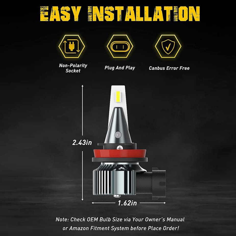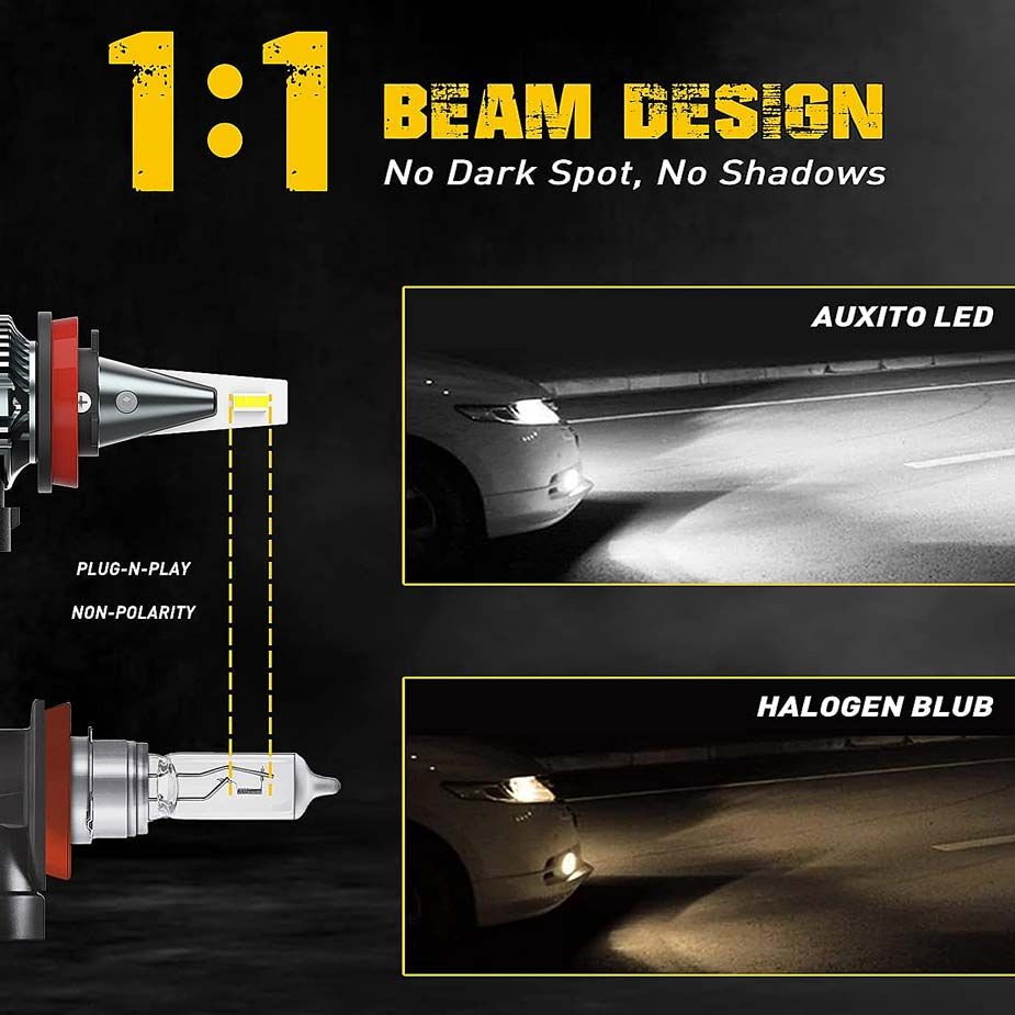 • Протитуманні LED  лампи Auxito HB3 мають розмір майже 1: 1 такий самий, як і галогенні лампи, освітлюють на 360 °, створюють безпечну діаграму спрямованості, яка дозволяє автомобілям або пішоходам помічати їх раніше.