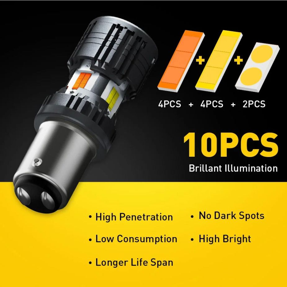 Двокольорові LED автолампи Auxito 4kp10 P21/5W BAY15D Canbus
