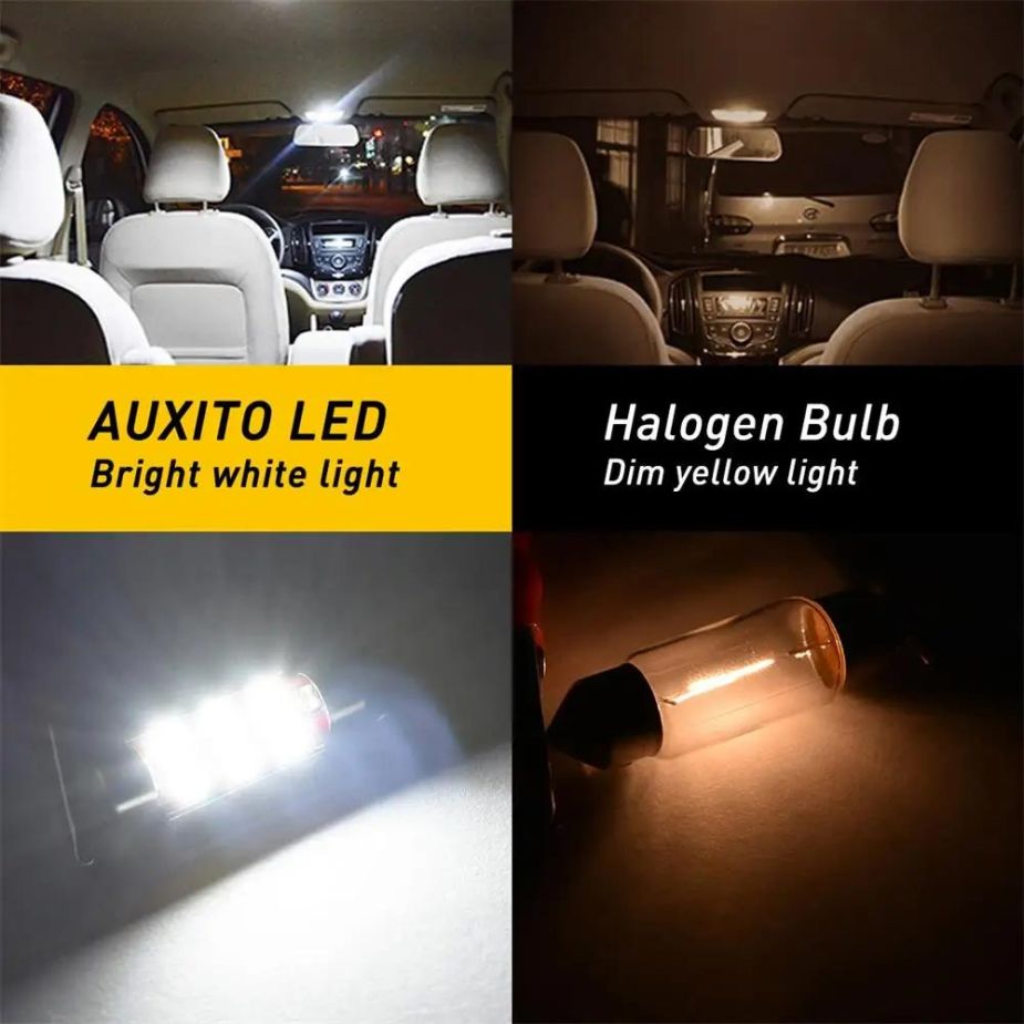 Світлодіодні лампи AUXITO C10W / C5W Festoon — це сучасне та надійне рішення для заміни штатних ламп розжарювання в салоні автомобіля та підсвітці номерного знака. Завдяки технології CANBUS лампи працюють без помилок на бортовому комп’ютері та сумісні з більшістю автомобілів.